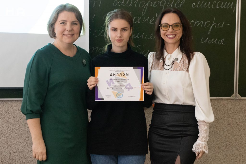 Победителем олимпиады по журналистике «Медиа и я» стала учащаяся 10 класса ГУО «Гимназия №1 имени академика Е. Ф. Карского г. Гродно» Арина Милай.