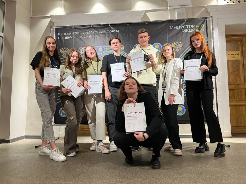 150 участников из 59 вузов двух стран объединил II Российско-белорусский форум студенческих СМИ «Индустрия медиа», который прошёл с 16 по 18 мая в Пскове. Купаловский университет на форуме представили студенты специальности «Журналистика» факультета истории, коммуникации и туризма Любовь Звержевич, Артём Булгаков, Анжелика Стефанович, Карина Мистюк и старший преподаватель кафедры журналистики Екатерина Костюшко.